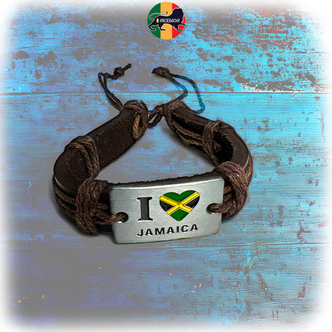 Jamaica Flag Leather Wrist Cuff Wrist Bracelet Hippie Bob Reggae One Love IRIE