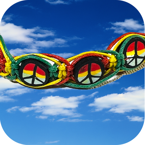 Positive Vibrations and All Mankind with this cool, high-quality Rasta-themed leather cuff.